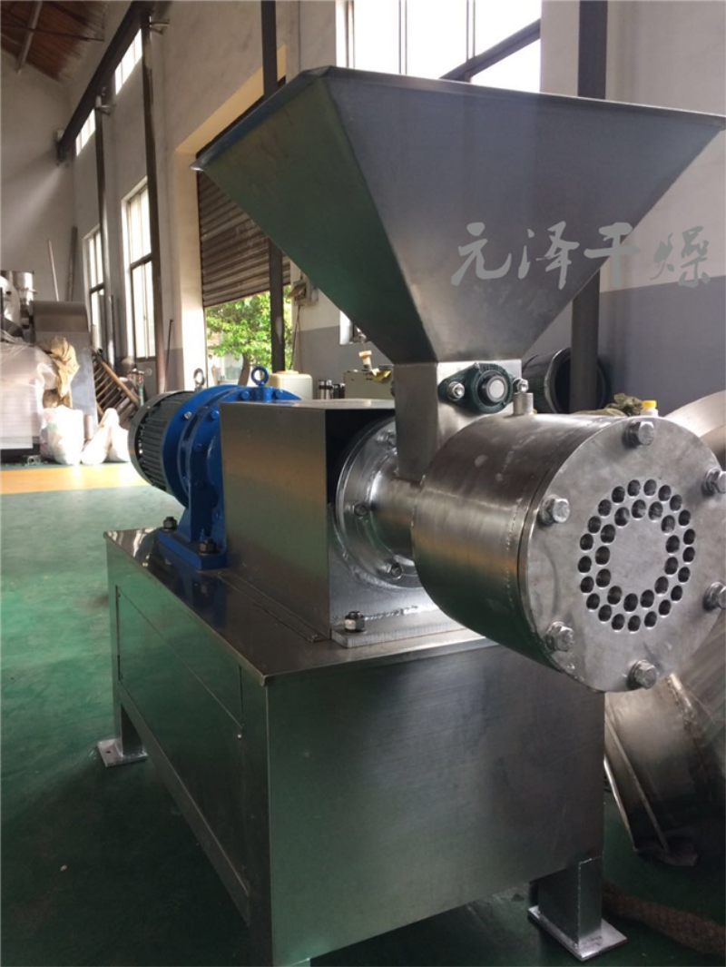在固體與液體共存并以固體為主的分散體中,利用分散體的自粘性(或外加粘結性),通過強制方式(如擠壓、重力、離心力、機械力、氣流沖力等)使固體粉料基本微粒相互粘接、增大,并形成一定形狀和粒度均勻、集中的顆粒群。濕法造粒成套裝置主要由混合(捏和)、造粒、干燥及其輔助系統設備構成。粉料經混合(捏和)后,進入造粒機形成所需粒度的含濕產品,經干燥得到顆粒狀成品,從而實現造粒的目的。