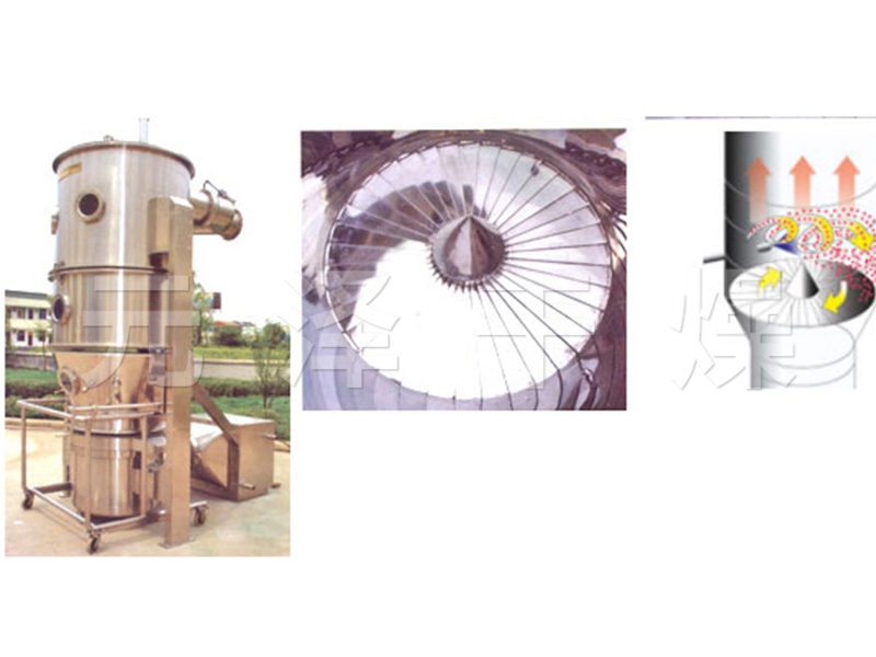 LBF 旋流流化床制粒包衣機是將流化床做成葉片式結(jié)構(gòu)的流化床,并使葉片呈一定斜度,讓氣流從葉片的間隙通過,形成環(huán)流狀的強大氣流,使物料呈旋渦狀似的有序運動,同時安裝在側(cè)壁的氣動噴嘴將粘合劑或包衣液噴入呈旋渦狀的物料層,從而將粉體制成顆粒或獲得連續(xù)均勻的衣膜。