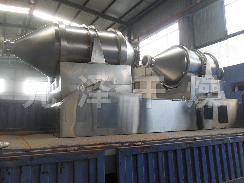 EYH系列二維運動混合機的轉筒可同時進行二個運動,一個為轉筒的轉動,另一個為轉筒隨擺動架的擺動。被混合物料在轉筒內隨轉筒轉動、翻轉、混和的同時,又隨轉筒的擺動而發生左右來回的摻混運動,在這兩個運動的共同作用下,物料在短時間內得到充分的混合。EYH二維混料機適合所有粉、粒狀物料的混合。
