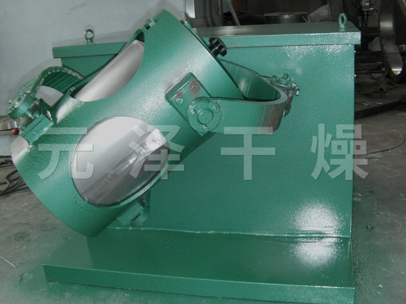 結構:該機由機座、傳動系統、電器控制系統、多向運動機構、混合筒等部件組成。與物料直接接觸的混合筒采用優質不銹鋼材料制造,桶體內外壁均經鏡面拋光。