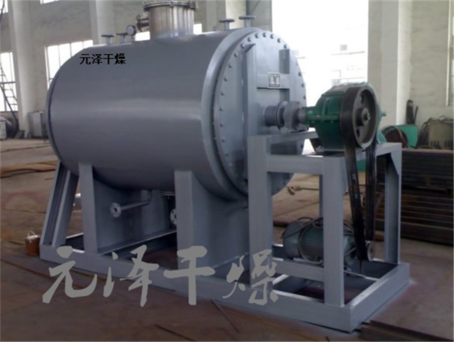 本機是一種新穎臥式間歇式真空干燥設備,濕物料經(jīng)傳導蒸發(fā),帶有刮板攪拌器不斷清除熱面上的物料,并在容器內(nèi)推移形成循環(huán)流,水份蒸發(fā)后由真空泵抽出。