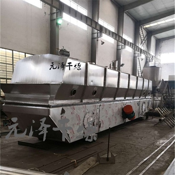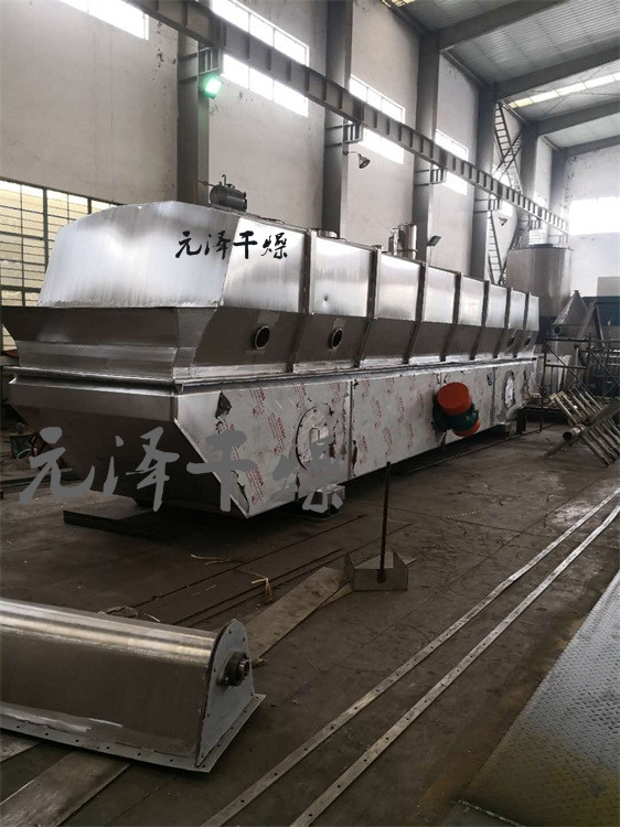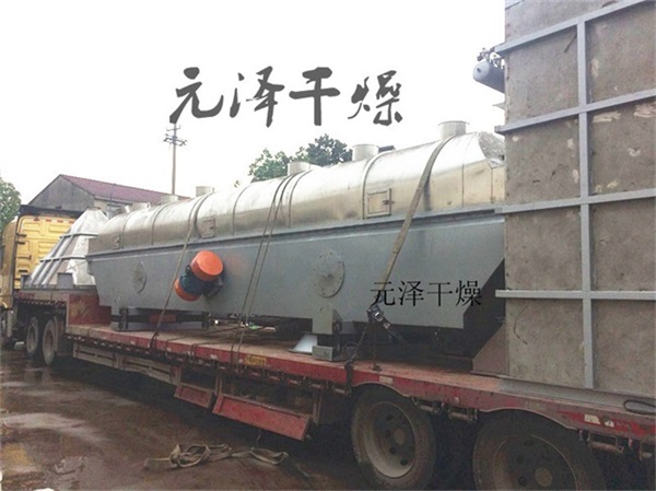 振動流化床干燥機物料自進料口進入機內, 在振動力作用下, 物料沿水平方向拋擲向前連續運動,熱風向上穿過流化床同濕料換熱后, 濕空氣經旋風分離器除塵后由排風口排出, 干燥物料由排料口排出。